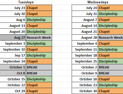 Semester 2, 2024 Sydney Chapel/Discipleship Group schedule